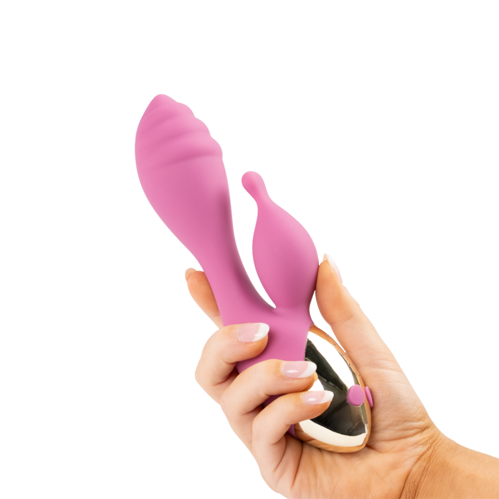 This silicone dual-action vibrator directs your pleasure with 20 speeds and pulsing patterns of independently controlled clitoral and shaft vibration for a completely customized pleasure experience. The shaft's ridged tip massages your G-spot while the tapered clitoral massager delivers exactly what you need.