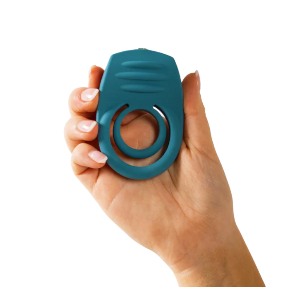 This dual-ringed cock ring provides pressure around both the penis and testicles for a “pleasing squeeze” that enhances both sensation and erections. It also offers 10 modes of powerful vibration when pressed up against the clitoris for stimulation both partners can enjoy.
