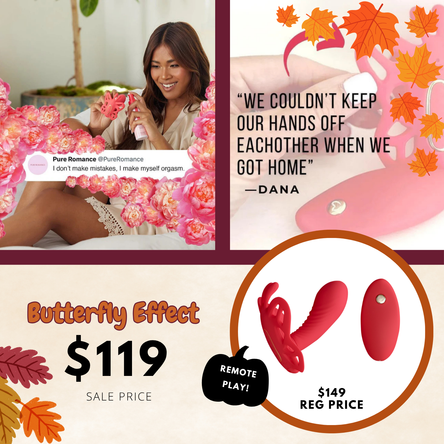 Let desire take flight with this erotic panty vibrator with 12 flirtatious vibrating speeds and pulsing patterns. Explore the possibilities of Butterfly Effect while flying solo or with your partner, who can control every tantalizing vibration using the wireless remote. Either way, your body will flutter with satisfaction!