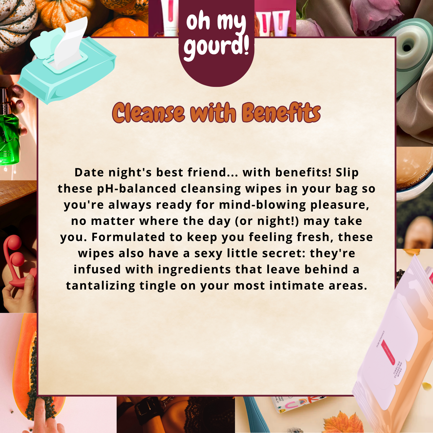 Date night's best friend... with benefits! Slip these pH-balanced cleansing wipes in your bag so you're always ready for mind-blowing pleasure, no matter where the day (or night!) may take you. Formulated to keep you feeling fresh, these wipes also have a sexy little secret: they're infused with ingredients that leave behind a tantalizing tingle on your most intimate areas.