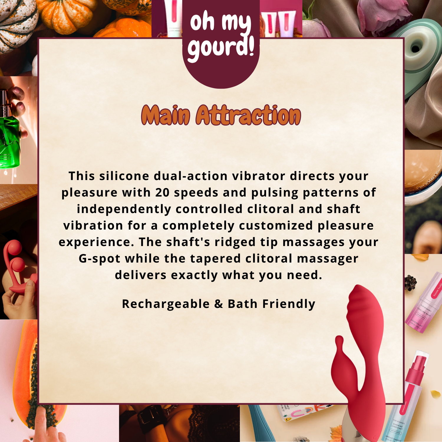 This silicone dual-action vibrator directs your pleasure with 20 speeds and pulsing patterns of independently controlled clitoral and shaft vibration for a completely customized pleasure experience. The shaft's ridged tip massages your G-spot while the tapered clitoral massager delivers exactly what you need.