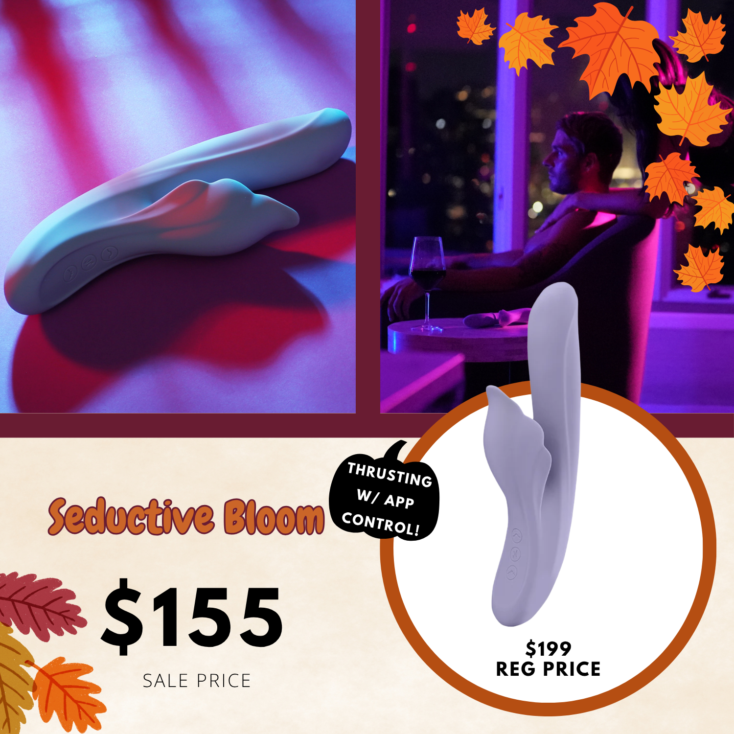 The shaft of Seductive Bloom boasts two speeds and five patterns of back-and-forth movement and a thumping tip that offers up another five speeds of stimulation. The soft and flexible silicone teaser features a large, petal-shaped surface that never misses the mark, surrounding your favorite spot with three speeds and seven rhythmic patterns of vibration. Mix-and-match to find your perfect blooming bliss.