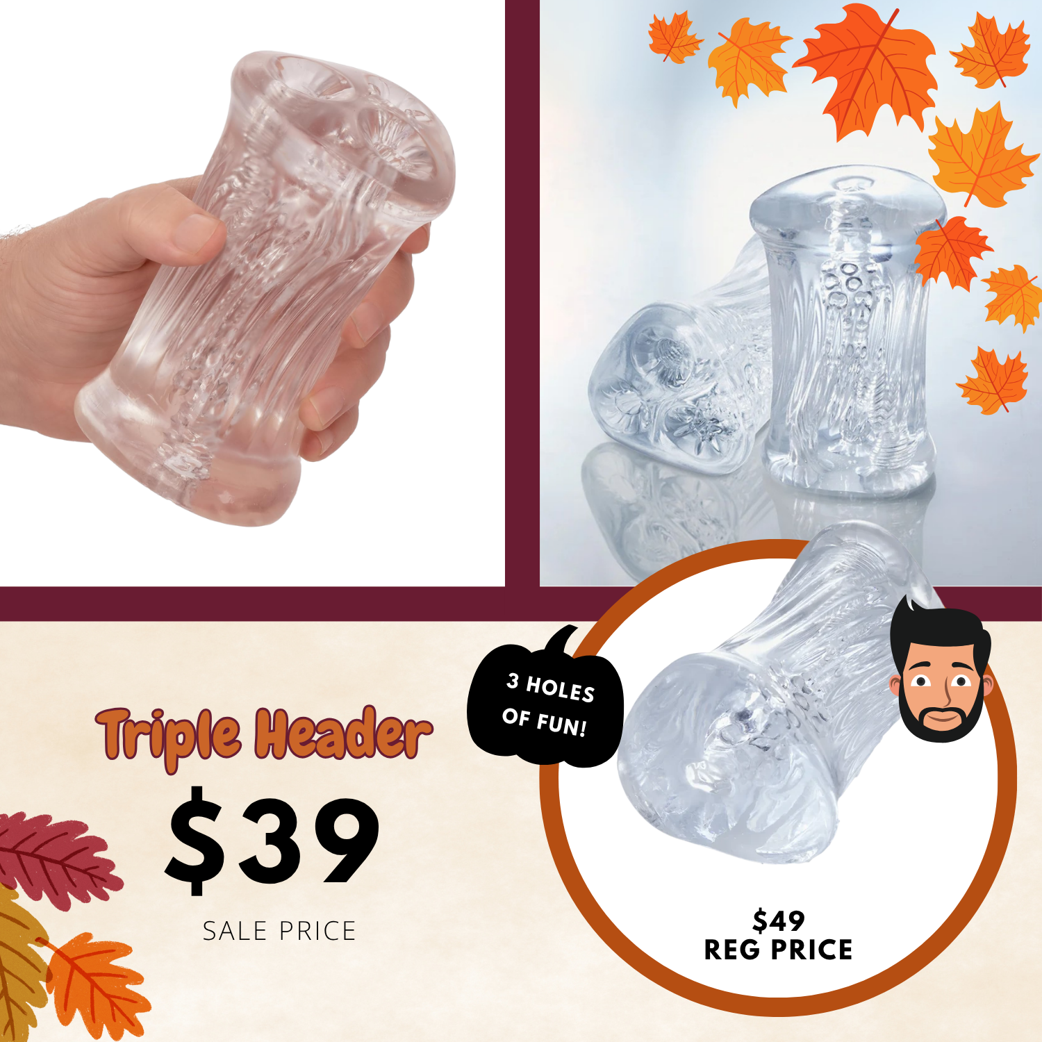 Why make a choice when you can have it all? Say hello to Trifecta, our multi-channeled masturbator that puts pleasure in your hands. Trifecta features an open-ended design with a single opening on one side, and three choices of entry channels on the other – each with a different tantalizing texture.