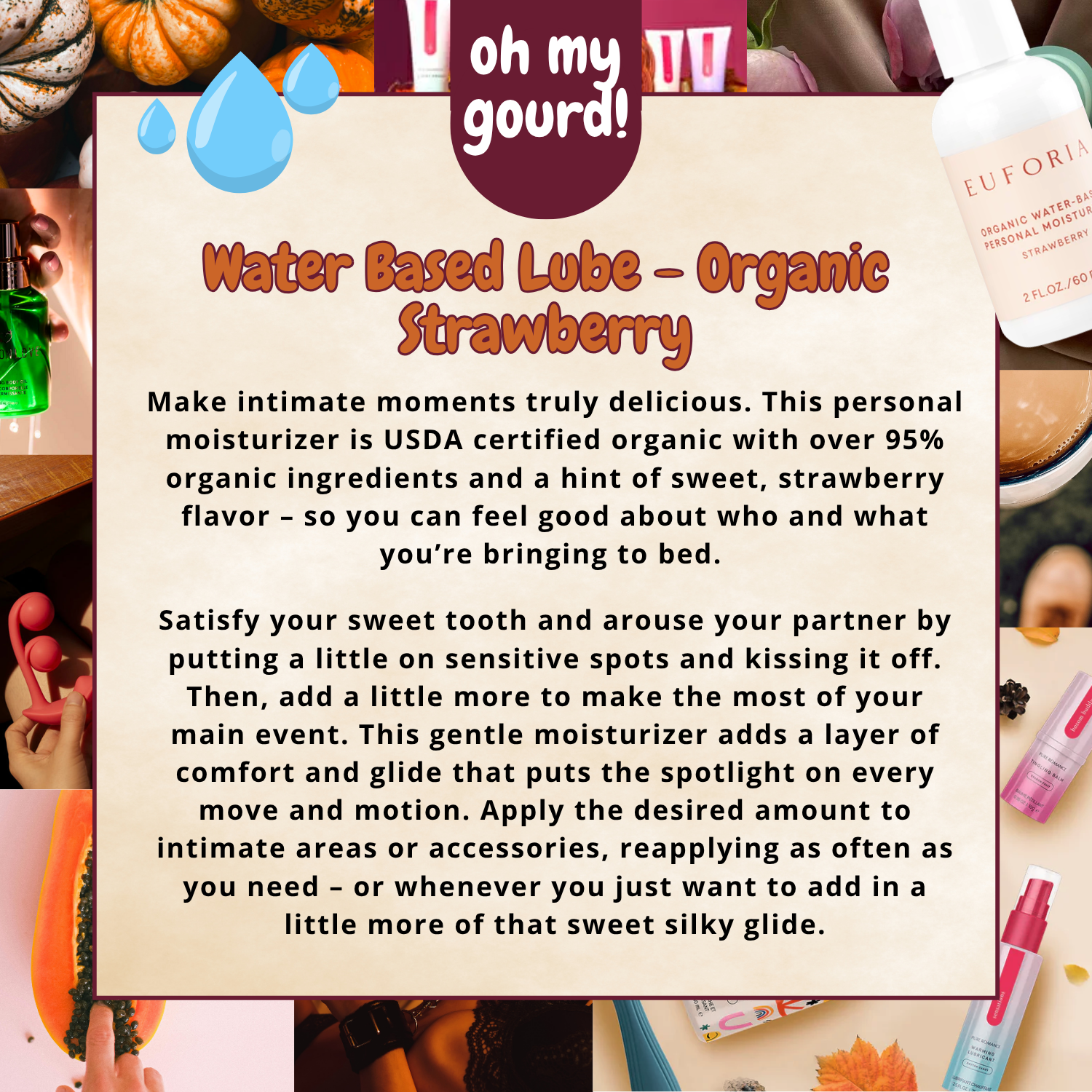 Make intimate moments truly delicious. This personal moisturizer is USDA certified organic with over 95% organic ingredients and a hint of sweet, strawberry flavor – so you can feel good about who and what you’re bringing to bed.
