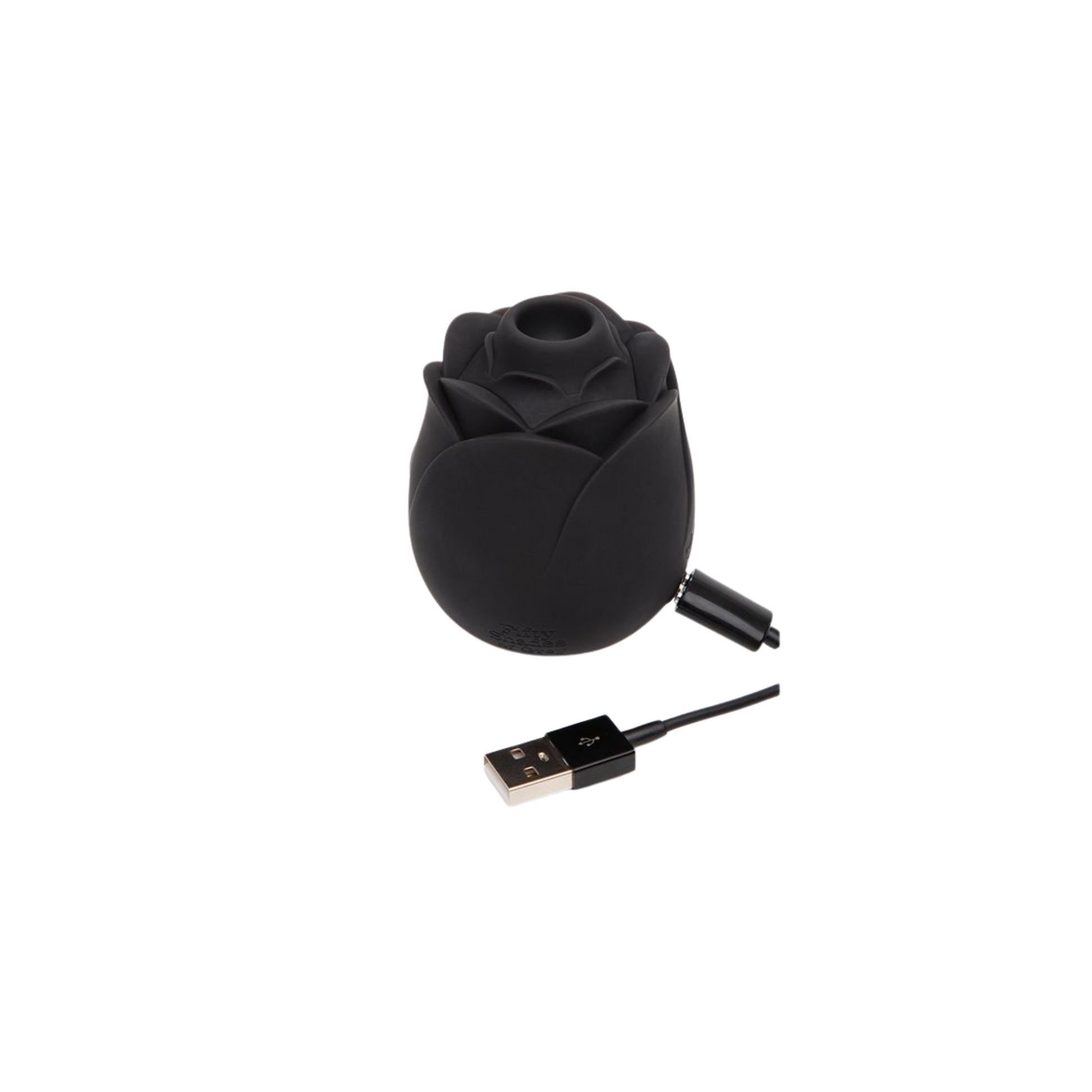 The Fifty Shades of Grey Rose Clitoral Suction stimulator is an object of true beauty, with the most thrilling of intentions. “There’s something about you, though, and I’m finding it impossible to stay away.” – Anastasia Steele. Delicately sculpted, velvet-soft petals surround a powerhouse of delicious suction prowess, elegantly poised to deliver 10 intense pleasure modes, composed of 6 speeds and 4 patterns, straight to your clitoris. Designed for longevity and so that you can enjoy the ripples of intense clitoral pleasure over and over again, the Fifty Shades of Grey Rose Clitoral Suction stimulator is fully rechargeable. Both quietly powered and waterproof too, this rose-shaped beauty is versatile and discreet, making it perfect for intimate moments anywhere. Slather generously with your favourite water-based lubricant for extra pleasurable sensations. Your Rose Clitoral Suction Stimulator comes with a Fifty Shades of Grey storage bag, making it an ideal erotic gift for fans of the books. Part of the Fifty Shades of Grey Official Pleasure Collection approved by author E L James.