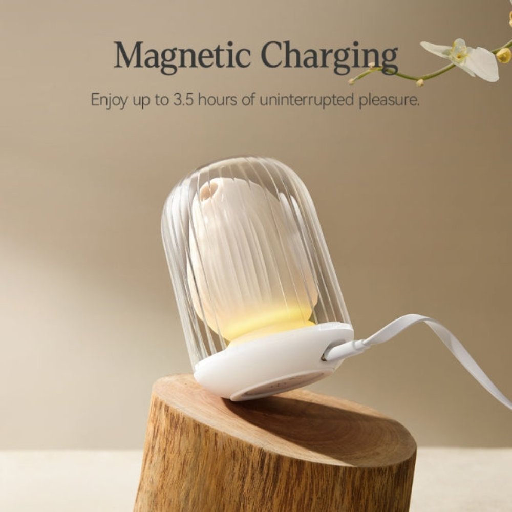 With 4 vibration patterns and 3 suction modes, you can mix and match to find your ideal rhythm. The included cruise control and pressure-touch features enhance your journey by responding intuitively to your body. When not in play, Cuddly Bird sits gracefully on its charging dock, which also doubles as a soft-glow nightlight for your bedside.