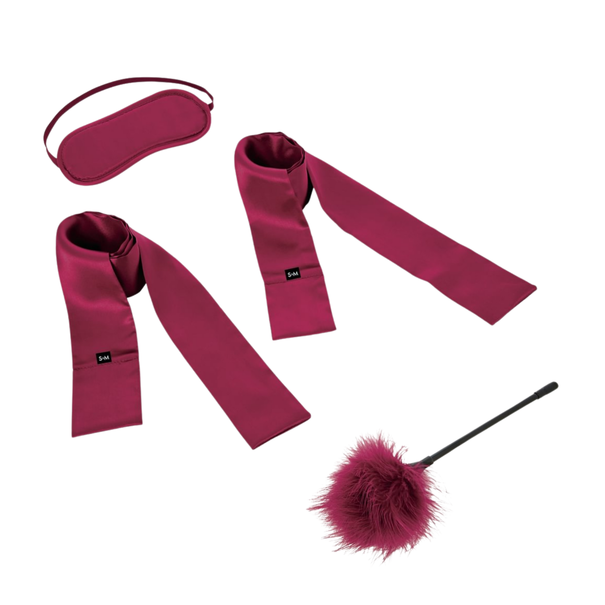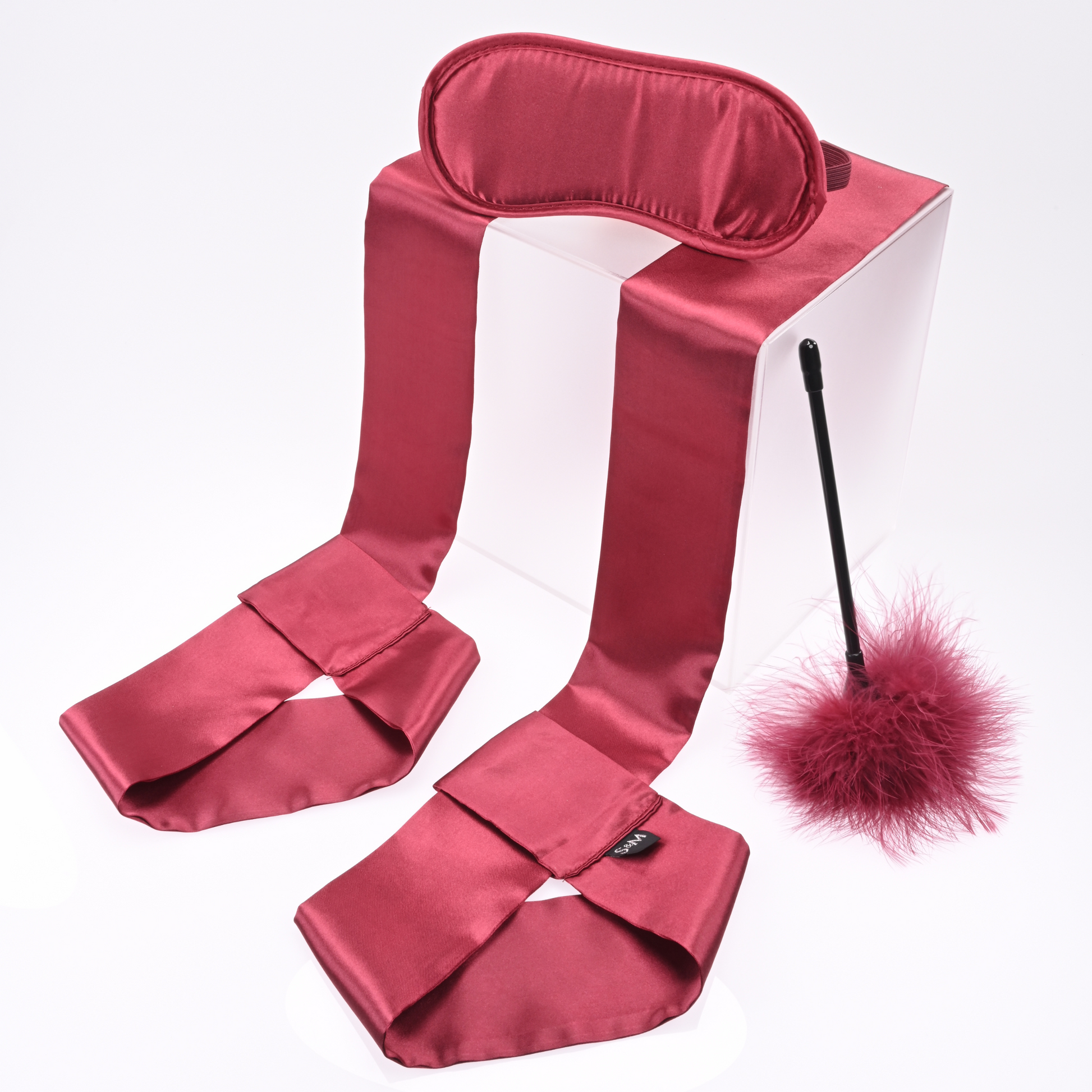 The Enchanted Starter kit comes in a seductive burgundy color that looks beautiful on all skin tones. Tempt and seduce your lover by using the Satin Blindfold, Feather Tickler, and Satin Tethers to experiment with power exchanges and sensation play. Tie your lover to your bedpost, or around any other surface by creating the cuff with the easy the silky restraints, the blindfold comes with a durable lingerie strap that will allow your partner to experience total blindness.